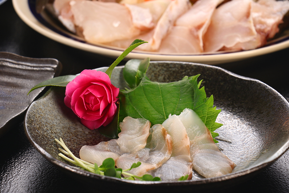 マグロ養殖で有名な近畿大学水産研究所が、世界初の人工ふ化から約20年かけて本格出荷を開始されました。由良町では年間通じてお手頃な価格でクエが堪能できるようになりました。地元漁港直送の新鮮な近大クエを贅沢にいただけます。むっちりと弾力がある白身、コラーゲンたっぷりのプルプルしたゼラチン質の食感はまさに絶品です。